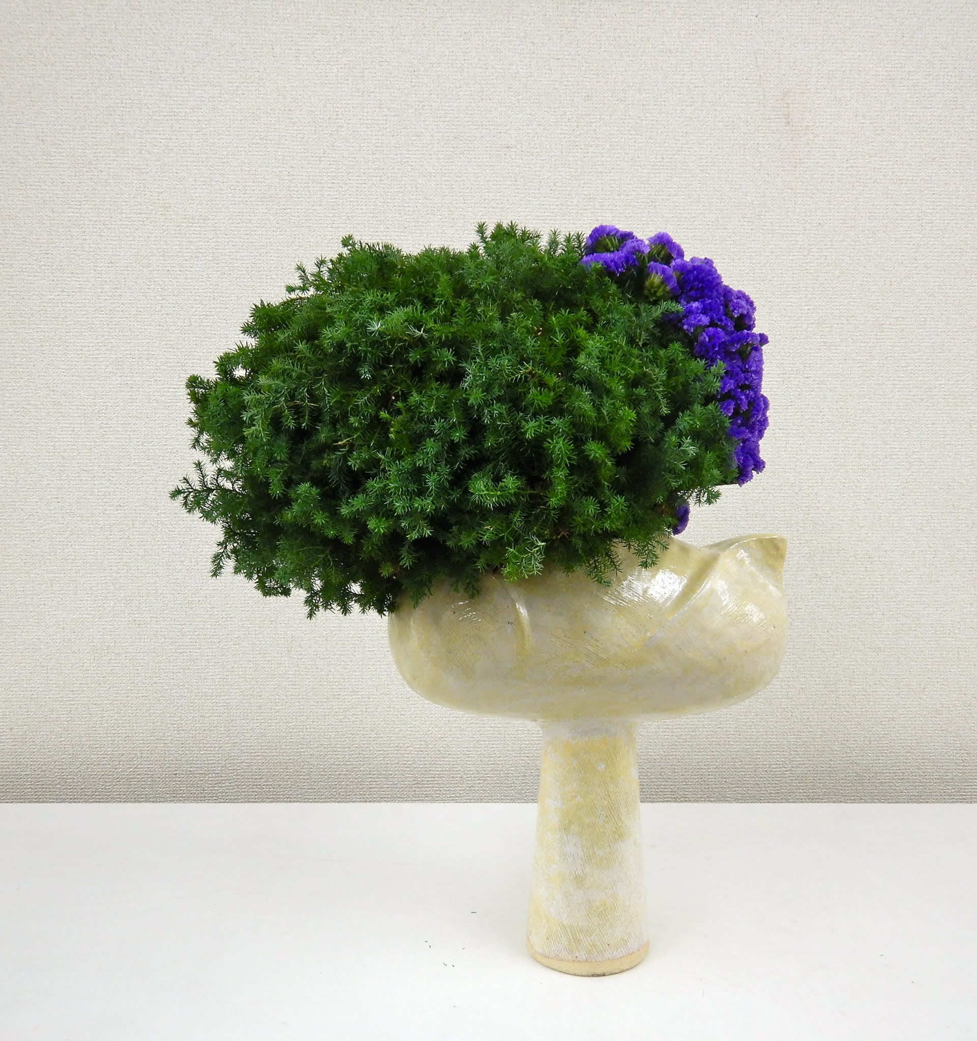 花材:スターチス[イソマツ科]→スプレーきく[キク科]使っていません→ひむろすぎ[スギ科]